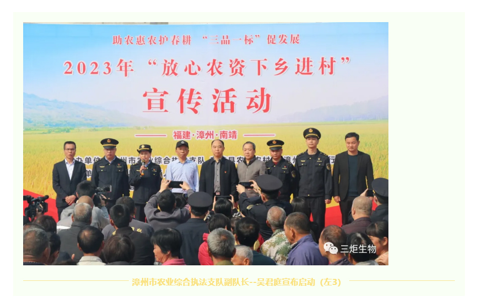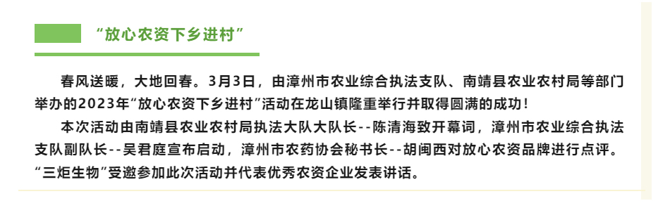 “三炬生物”受邀參加南靖縣“放心農(nóng)資下鄉(xiāng)進(jìn)村”活動(dòng)并代表講話!